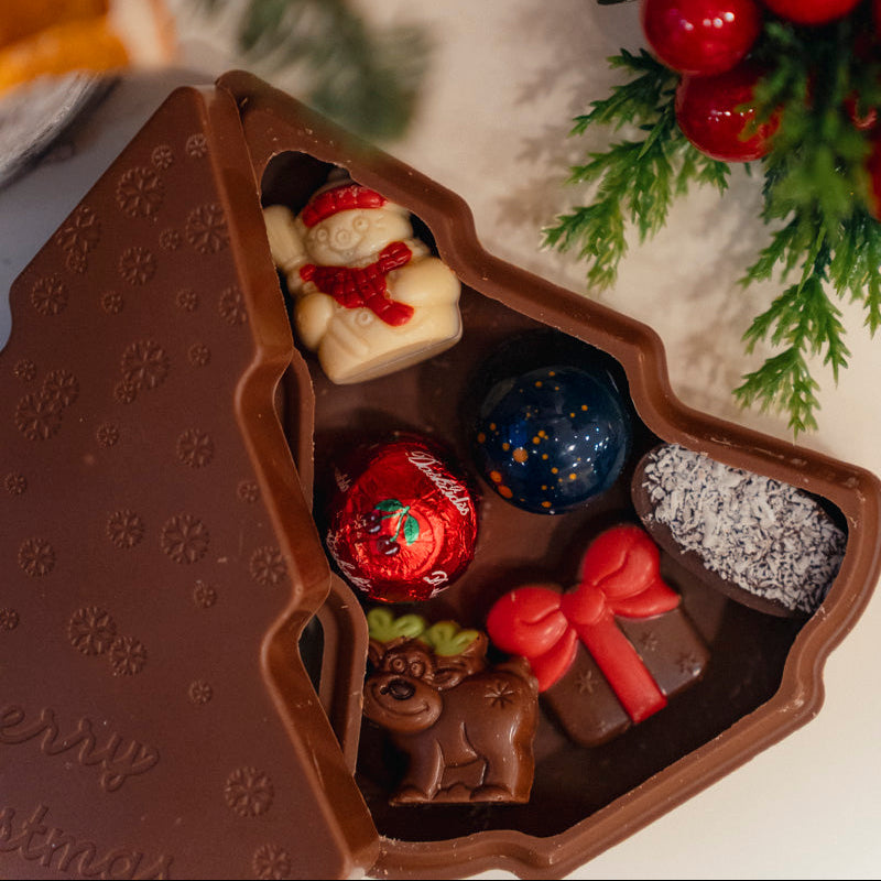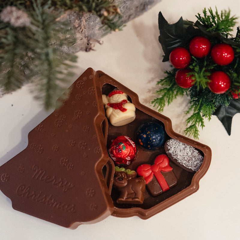 Подарете сладко вълшебство с изисканата бонбониера “Елха” от белгийски шоколад Daskalidès. Под формата на коледна елха, тази ръчно изработена шоколадова кутия крие вътре подбрана селекция от фини шоколадови бонбони – всяко парченце е малък празник за сетивата.