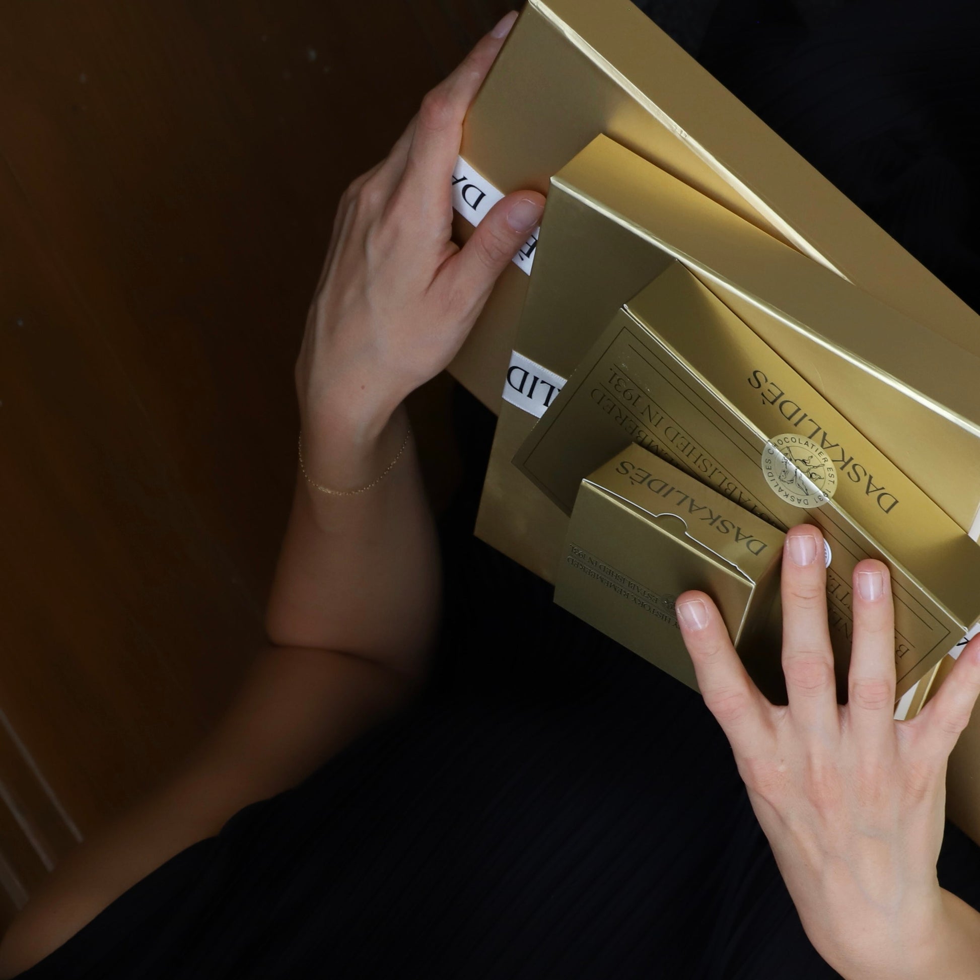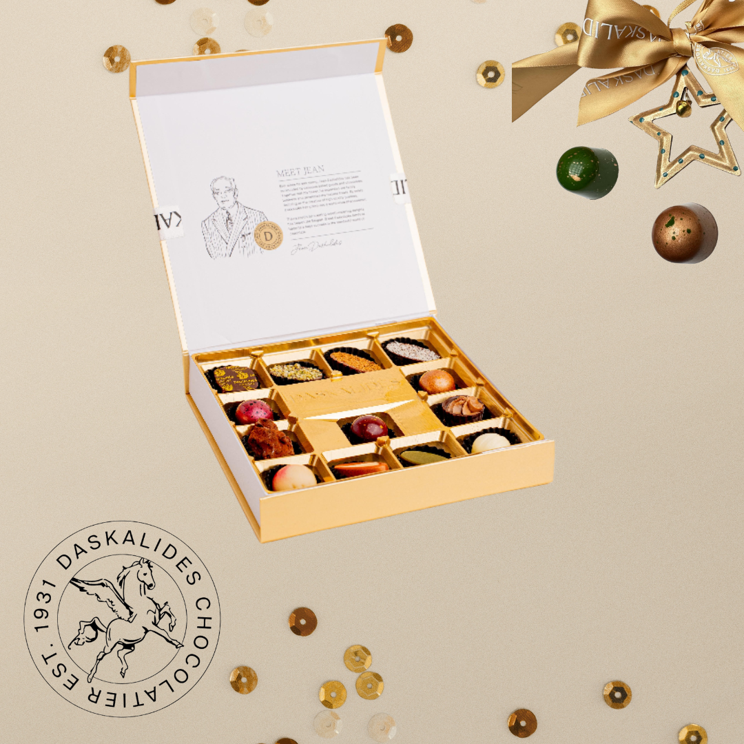 Във всяка бонбониера ще откриете подбрани шоколадови бонбони Daskalidès, изработени от висококачествен белгийски шоколад. Перфектен избор за подарък, коледен жест към колеги и приятели, или като стилно допълнение към празничната маса.