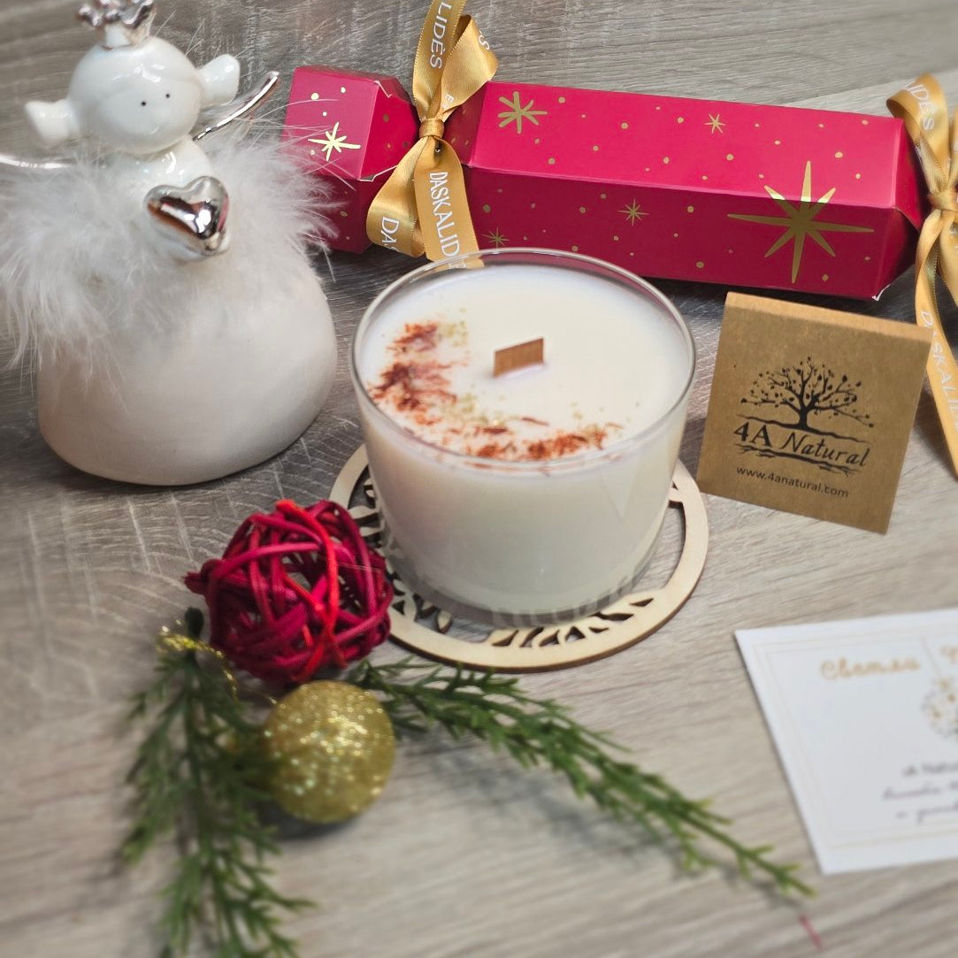 -Натурална ароматна свещ 4A Natural с дървен фитил и аромат на саnдалово дърво и мандарина 200гр
