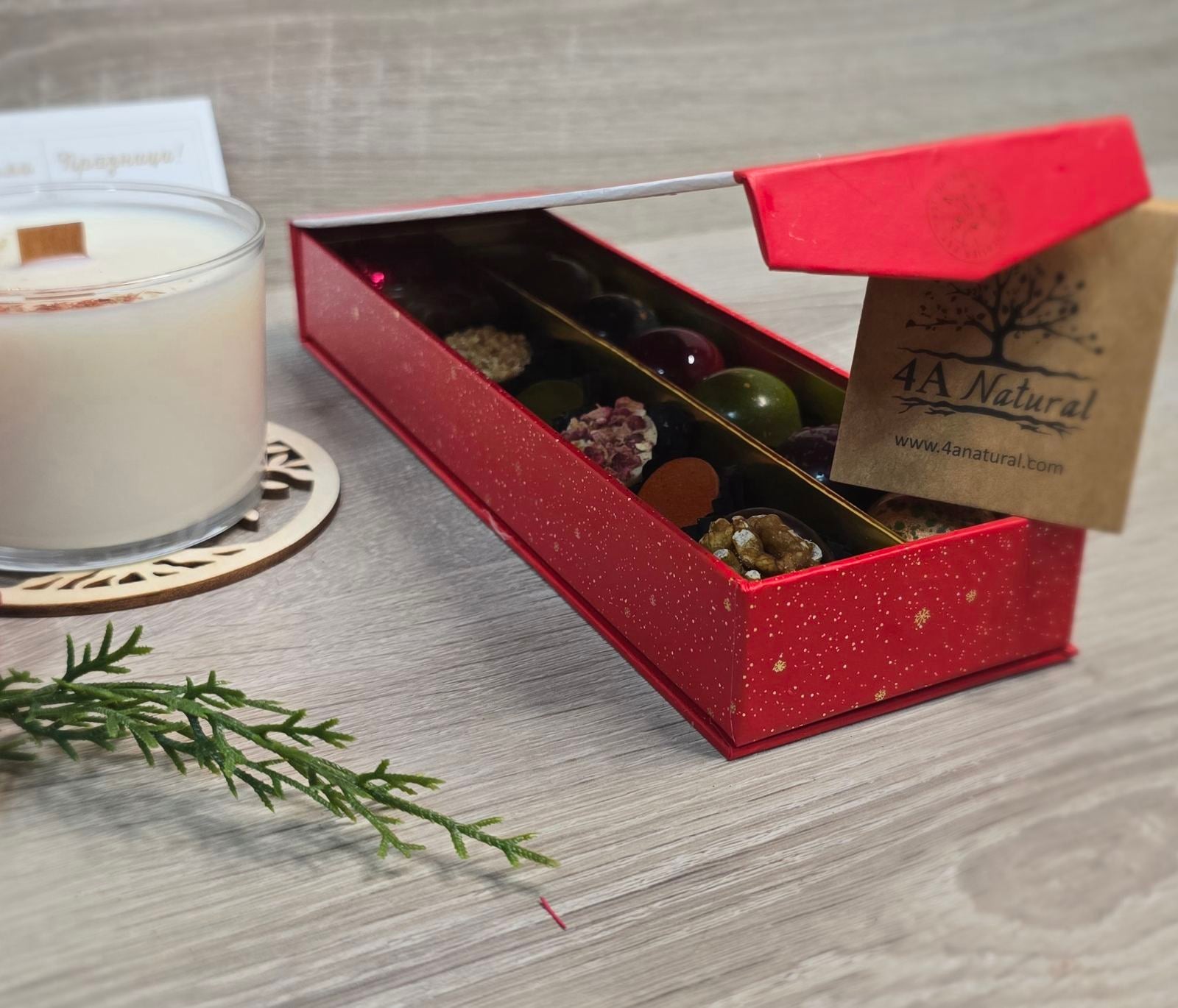 - Двуредна коледна бонбониера с магнитен капак на Daskalidès Black Sea с 14 пралини.